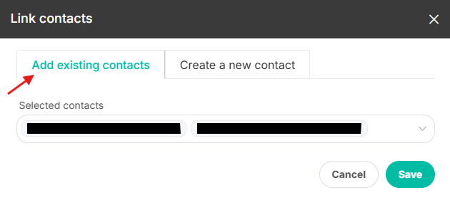 Step 2: Click Link contacts, then choose "Add existing contacts" and search for the contact person's name. Select them and save.