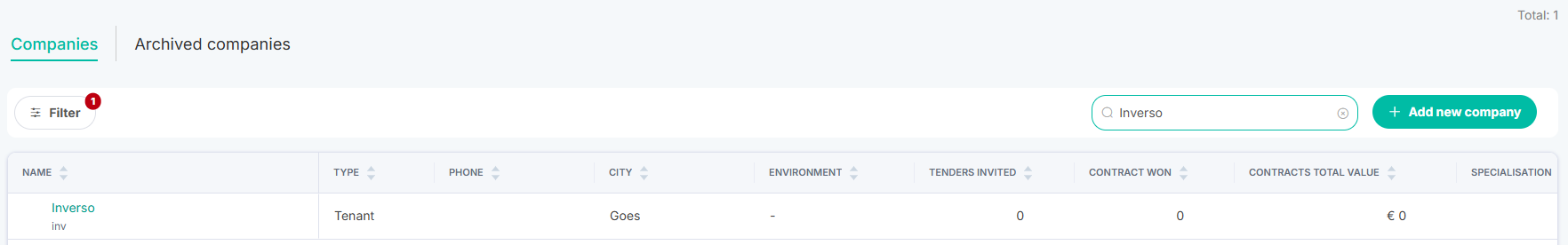 Tip: You can identify incorrectly created companies because they will have an email domain as their company name (e.g. "hansanders.nl" or "iwish.com") rather than the full company name as it appears in your property management system.