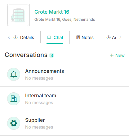 - Announcements: within this chat, only the internal team will have the ability to post announcements that will be available to all tenants and to the supplier linked to the ticket.